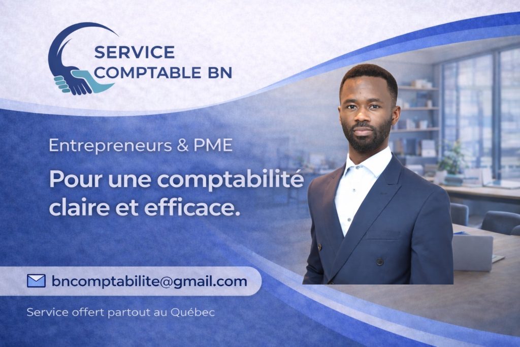 Service Comptable BN accompagne les entrepreneurs, PME et travailleurs autonomes du Québec en leur offrant une comptabilité claire, fiable et toujours à jour.