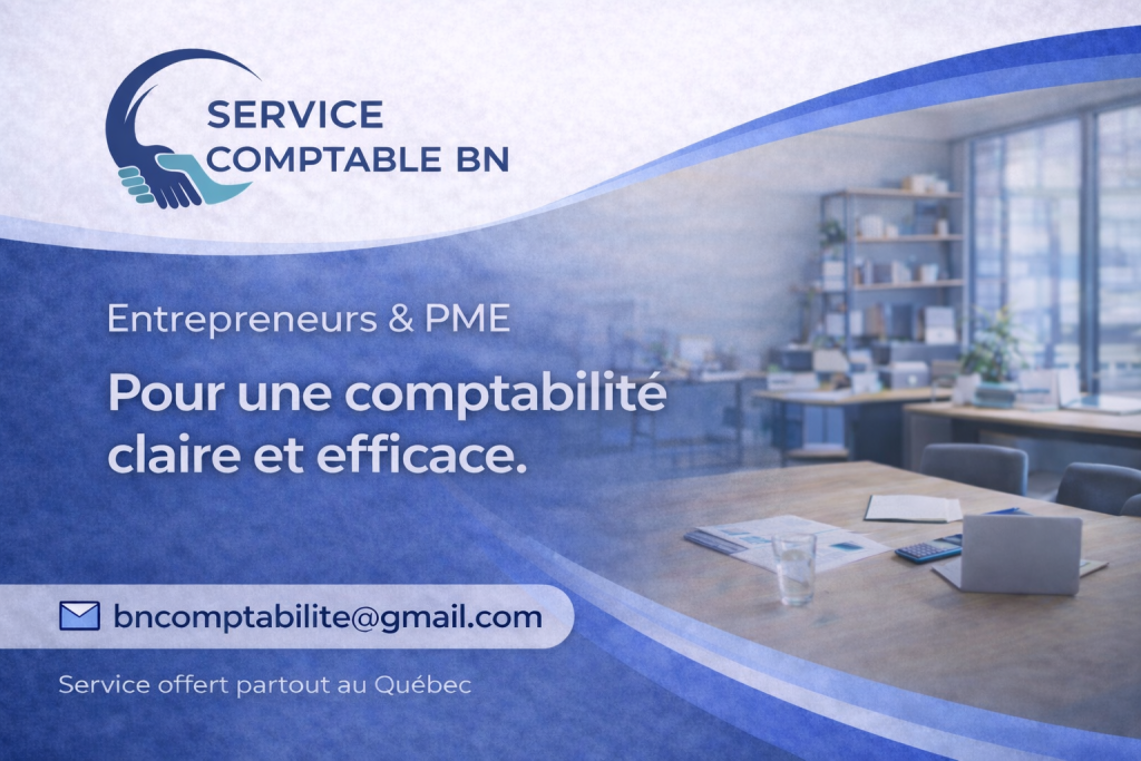 Service Comptable BN accompagne les entrepreneurs, PME et travailleurs autonomes du Québec en offrant une comptabilité moderne, transparente et toujours à jour.